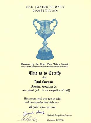 Wheeler Paul Curran has found a place among time trialling's junior elite