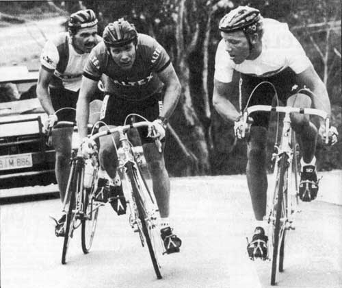 Through the small mountain towns on the way back to the main highway at Springwood, Wegmuller and Stevenson worked well together, and at Spring-wood they had 40 seconds lead on the bunch, led by John Tonks, with Paul Curran, Dave Mann, Andy Paulin (USA), Steve Hodge (Australia) and Jan Koba (Switzerland) looking comfortable.