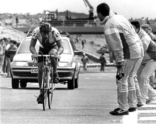 In this ever-changing, absorbing road race, this break was to end also, with a fresh attack by Drew Wilson (Scotland), Deno Davie (England), Cox and inevitably, Curran.