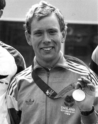 He went for a seemingly suicidal lone break with three seven-mile laps to go of the wet and windy Edinburgh by-pass circuit, was caught by Fowler and Leslie with a lap to go, then sprinted neatly through the inside at the finish to land his second gold medal of the Games.